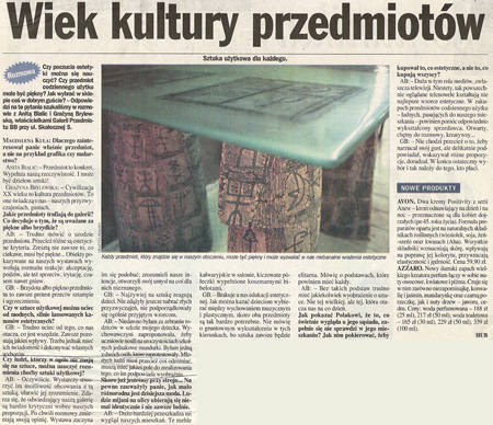 "Wiek kultury przedmiotu" - Gazeta Wyborcza - 2.11.00